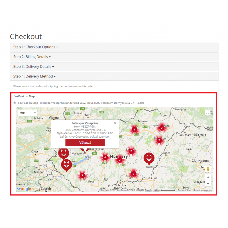 Opencart - FoxPost Csomagok on Google Map Weight Based OC